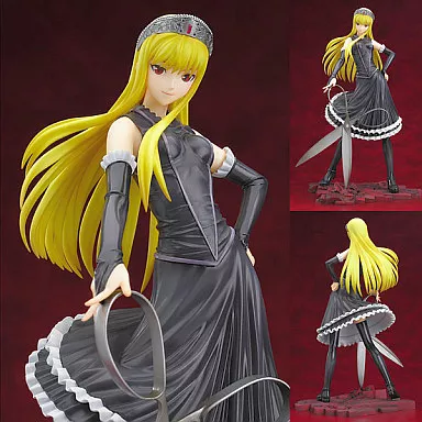 Beside it, there are huge scissors that match the image of the work, a black dress with long blonde hair and a smile with a noble figure.