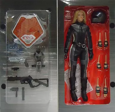 It is based on the image of a blonde French woman wearing a black rider suit and shooting a harley in a 60's film. The attached helmet system is also based on a model with a French connection. It comes with a custom gun "MAGGY HAMMER" and a machine gun. The hanger type holster with a heavy look is a double use type for the custom gun only (if you have 2, you can also use 2 pistols mode). The reason for the loose silhouette around the waist is to lighten the burden on the movable part between the legs and to make it easier to ride on motorcycles of the same scale. The parts of the suit have been modified to a modern configuration.