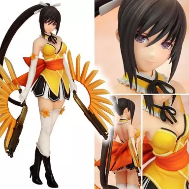 It is faithfully three dimensional with the expression with a cool smile, super long ponytail, half in Japanese style and half in European Western style costume with yellow as the base, beautiful standing with characteristic 2 magic guns.