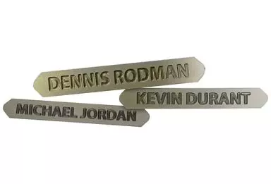 There are 7 types of name plates of players such as Michael Jordan, Dennis Rodman, Kobe Bryant, LeBron James, Derrick Rose, Jeremy Lynn, and Kevin Durant.