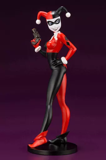 The anime version of Harley Quinn drawn by Bruce Timm is so popular that it is later reimported into comics. With a big gun in the right hand and a cute standing pose with a look back smiling unrivaled, this item has a three dimensional look.