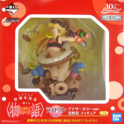 It is a cute Shinobu wearing a swimming suit with a swim ring and a water gun in a doughnut box full of dynamism.