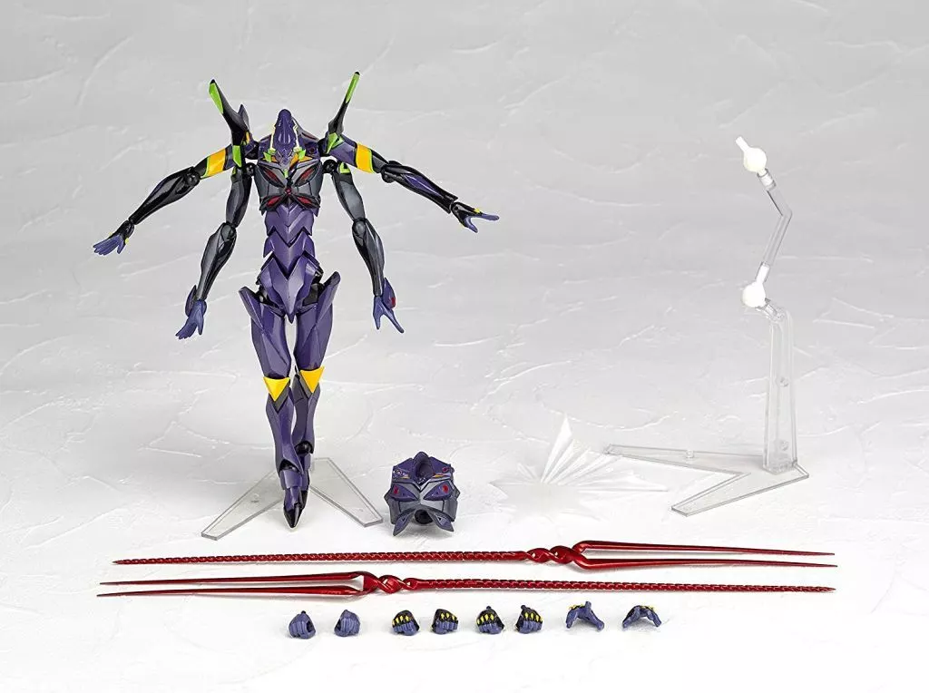 Figure Body, RS Hopper Support, A.T. Field, RS Hopper, Replacement Hand Parts x 8 (4 each for left and right), Longinus's Spear x 2, 4 Arm Chest, Replacement Hand Parts (with Handle) x 2, Support Arm, Pedestal, Gripper, Seal
