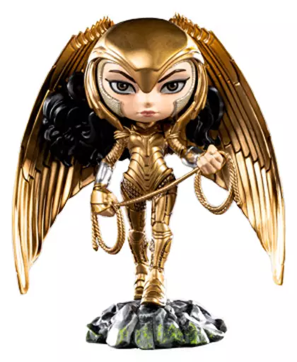 From the Film 『 Wonder Woman 1984 』, the Wonder Woman wearing Gold Armour has been deformed cutely to become a three dimensional mini statue with a total height of approximately 15 cm.