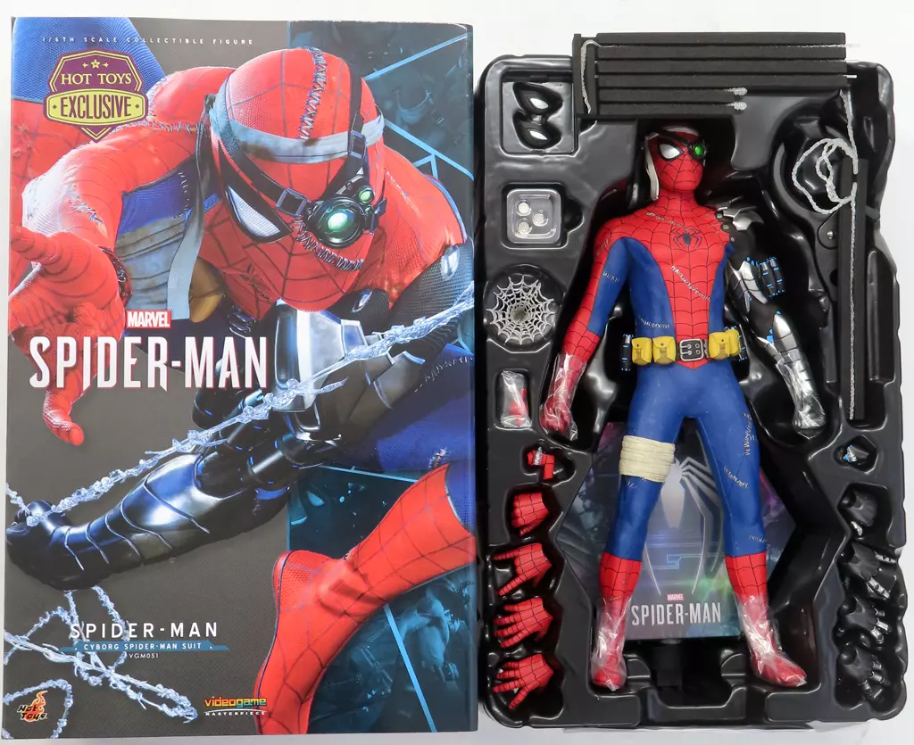 ホットトイズの高い技術力によって立体化された、サイボーグ・スパイダーマン・スーツを着たゲーム版スパイダーマン。