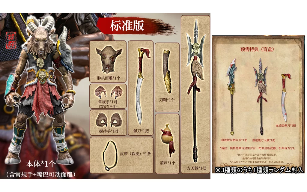 特徴的な二本の角、三尖両刃刀を携えた勇ましい姿を完全再現。可動仕様で様々なポージングが可能。ぜひお手元でご堪能ください!