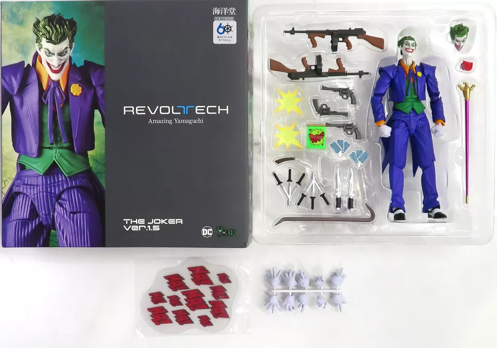 フィギュア本体、オプションフェイス、オプションハンド(左右各5)、マシンガン×2、トイガン×2、トイガン(旗付き)、銃弾エフェクト×2、バール、ナイフ×2、ダガーナイフ×2、剃刀、トランプ×2、ステッキ、入れ歯爆弾、笑い声エフェクト×2、説明書