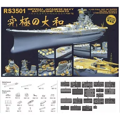 ■ Now available is a detail upset for T Company 1/350 scale "Yamato". Not only handrails, electric probes, cranes, etc., but also slip-proofing of the floor surface of the upper structure, flight decks, bridge details, and gun seats of each machine are etched. The main gun waterproof cloth, 12.7 cm multiple high-angle guns (without shield), ammunition box, and mounted boats are reproduced with resin-made parts. It comes with 9 main gun bodies, 6 secondary gun bodies, and 24 high-angle gun bodies (2 types of long and short).