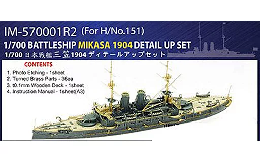 The battleship Mikasa kit is a selection type for the Battle of Japan Sea (1905) or the Battle of Yellow Sea (1904).
