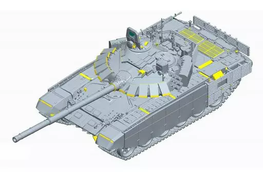 This is the latest updated model of the T-72 Main Tank. Various armor has been added to the side and rear of the body and the turret.