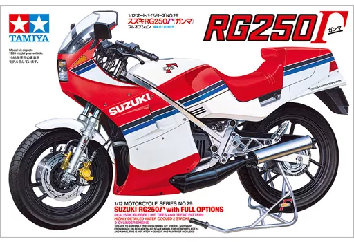 Product Description : A plastic model assembly kit for the Suzuki RG250 Γ (gamma), which has attracted the attention of motorcycle fans since its launch in March 1983 due to the appearance and performance of the racer itself.