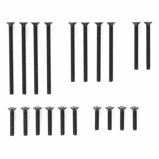A set of flat countersunk screws with screw heads. If countersunk holes are applied to the plate attached to the back of the chassis, the screw head does not come out and the bottom surface can be finished smoothly, preventing the screw from contacting the road surface.