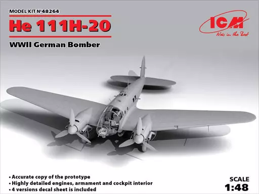 Product Explanation ■ He111H-20 WWII German Bomber is now available in 1/48 scale kit.