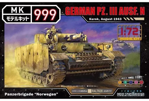 Japanese title: プラモデル 1/72 ドイツ軍3号戦車N型 「モデルキット999シリーズ No.8」 [5008]