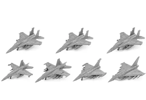 Completed Size : F-15C : total length approx. 27.7 mm, F-15D : total length approx. 27.7 mm, F-15E : total length approx. 27.7 mm, F/A-18E : total length approx. 26.2 mm, EA-18G Electronic Warfare Aircraft : total length approx. 26.2 mm, Rafale C : total length approx. 22.4 mm, Typhoon single seated type : total length approx. 22.8 mm