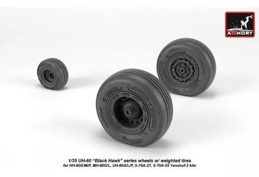 Japanese title: プラモデル 1/35 UH-60 ブラックホーク 自重変形ホイール ディティールアップパーツ [AMRAW35303]