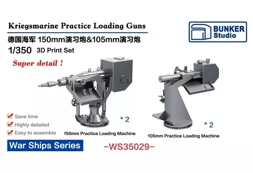 Japanese title: プラモデル 1/350 WW.II ドイツ海軍 105mm & 150mm 装填演習砲 ディティールアップパーツ [BSTWS35029]