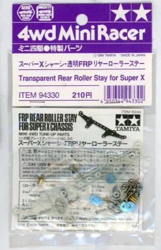 商品解説■「ミニ四駆グレードアップパーツ」に、1/32 スーパーXシャーシ・透明FRPリヤーローラーステーがラインナップ。