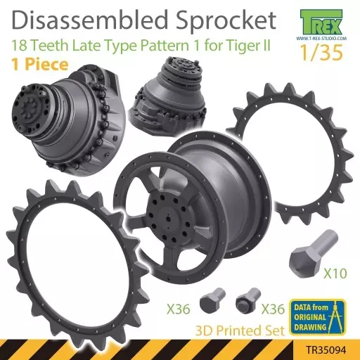 It is made into a motif of pattern 1 of 18-tooth starting wheel attached by the late model of King Tiger produced in the end of World War II. One set contains one (for one side).