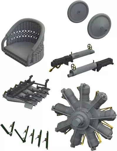 Item Description ■ Contents : It is a set of 6 items including a Norm engine, wheel, Vickers machine gun, pilot seat, wind engine oil pump, 20 lb bomb w / bomb rack.