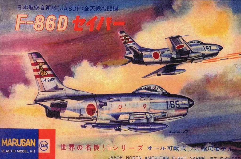 The F-86D Sabre (silver plated) all-weather fighter of the Japan Air Self-Defense Force (JASDF) in the world famous 1/50 series is lined up in the product explanation ■「 mini plastic model collection Marusan Toho Character edition.