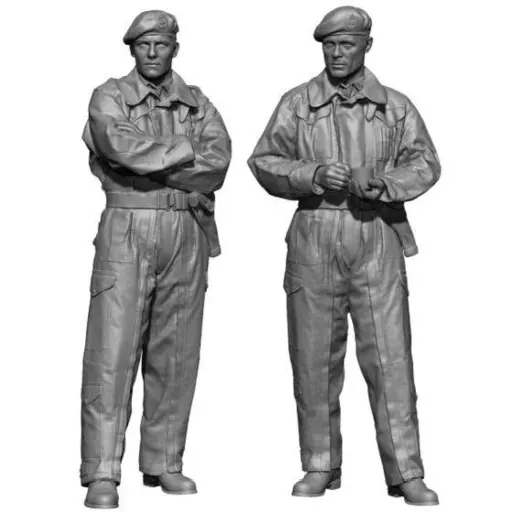 This is a 1/35 scale 1/35 World War II British Army winter tank soldier kit 2 Figure Set.