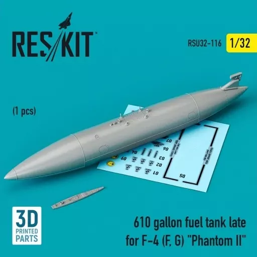 Japanese title: プラモデル 1/32 F-4F/G ファントムII 610ガロン増槽 後期型 ディティールアップパーツ [RSKU32-0116]