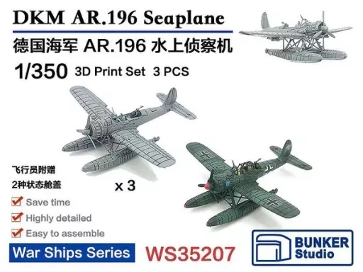 Japanese title: プラモデル 1/350 ドイツ海軍 アラド Ar 196 (3機セット) [BSTWS35207]