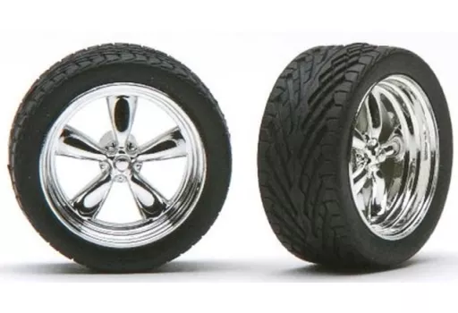 This set is a set of 4 wheels and tires for a 1/24 scale car model.