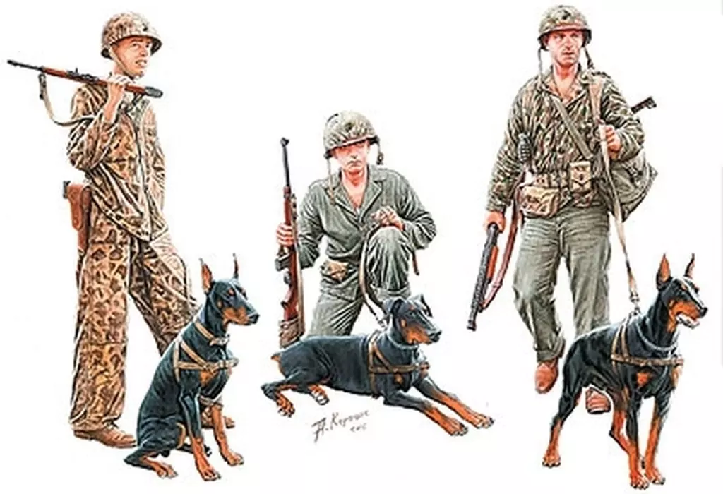 1/35 Three US and Marines, three Pacific War Doberman dogs [MB35155]