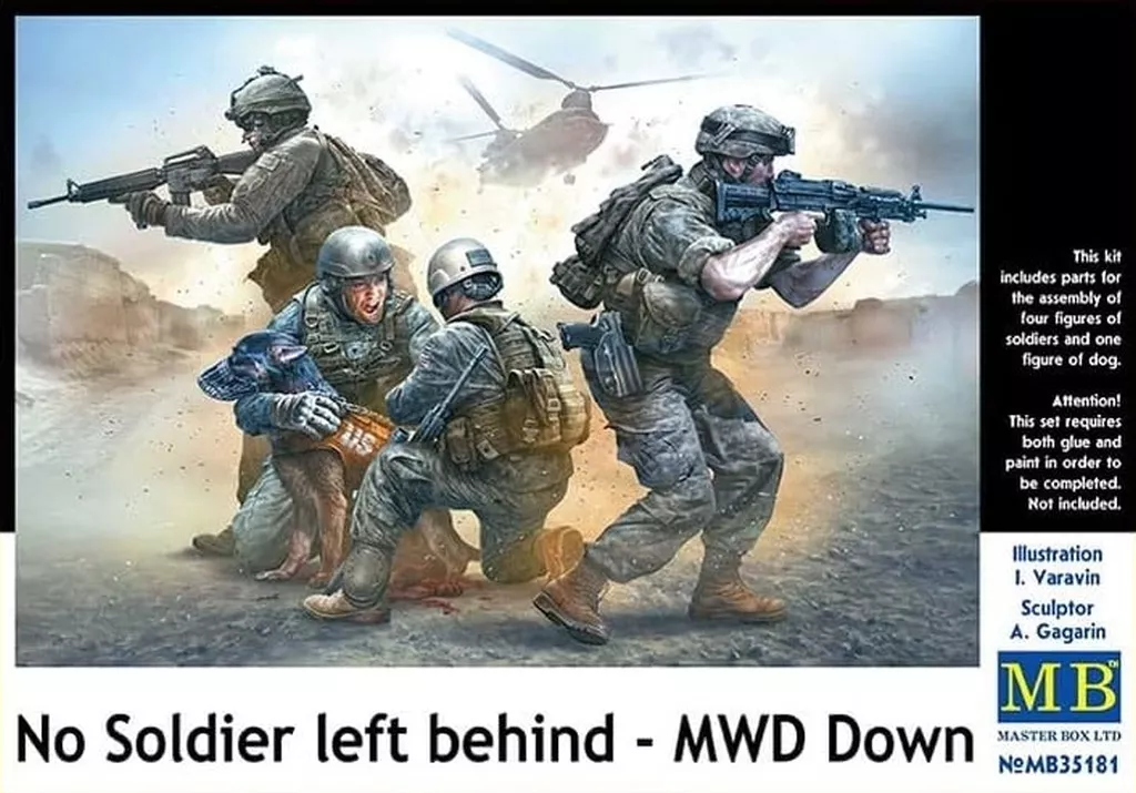 Japanese title: プラモデル 1/35 米・現用兵士4体+犬・中東-軍用犬救出 [MB35181]