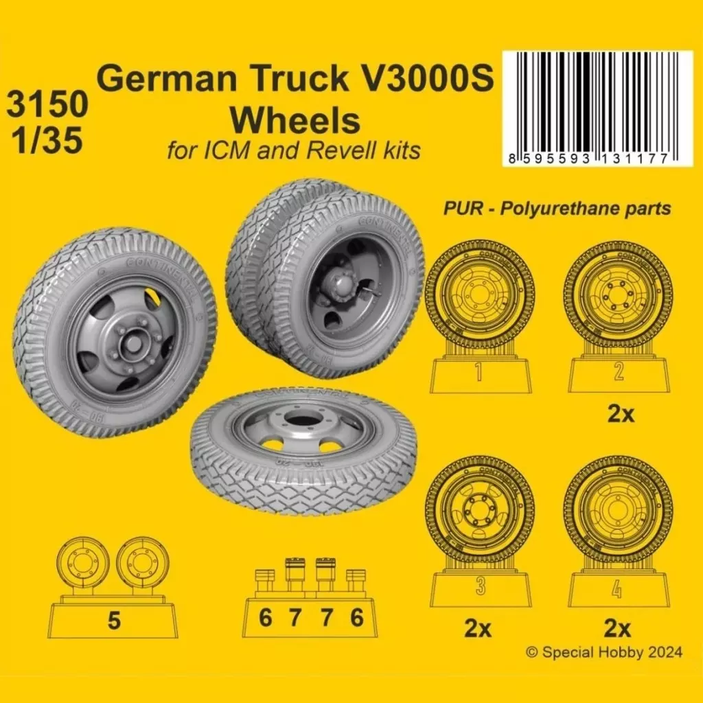 Japanese title: プラモデル 1/35 WW.II ドイツ V3000S トラック 自重変形ホイール (ICM用) ディテールアップパーツ [CMK3150]