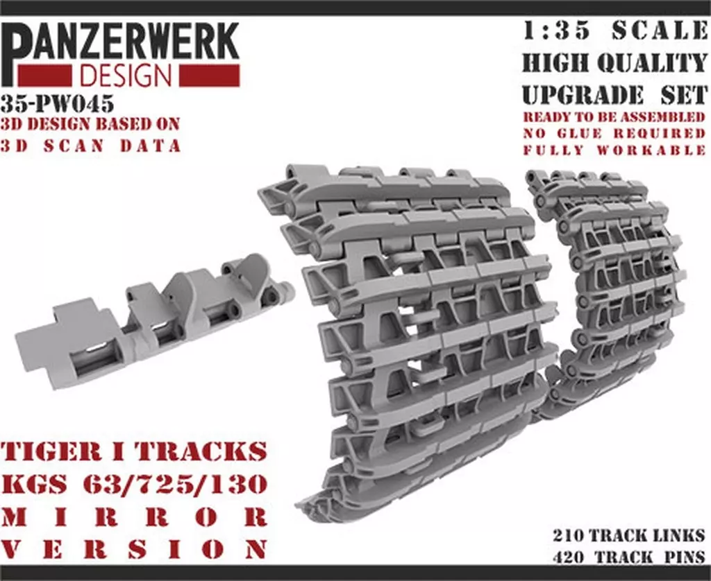 Japanese title: プラモデル 1/35 ティガーI用・初期型・左右別・可動履帯 ディティールアップパーツ [WR35045]