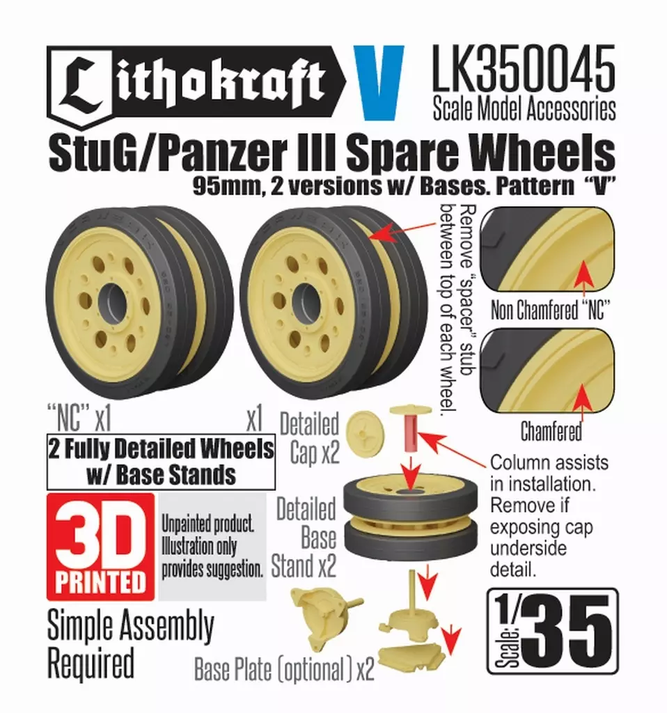 商品解説■ドイツ軍のIII号戦車やIII号突撃砲の95mm幅予備転輪を再現するディテールパーツセットです。パターンVはVORWERK社製のゴムリム付き転輪となります。