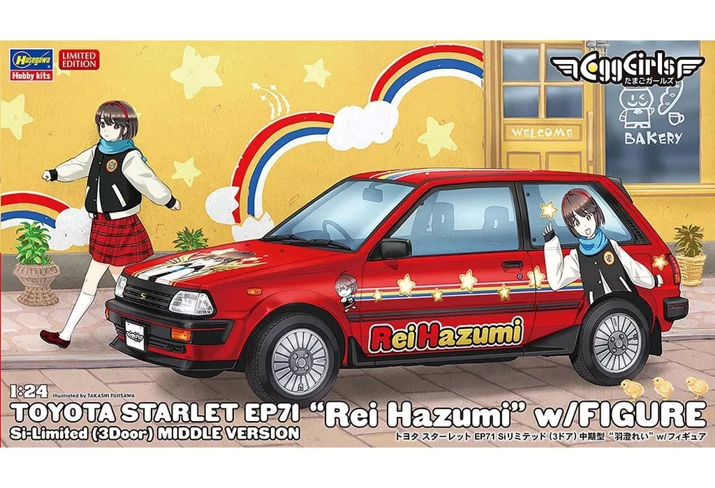 Set of "Toyota Starlet EP71Si Limited (3-door) medium-term type" and "羽澄 Rei" (resin-made figure) of the same scale.