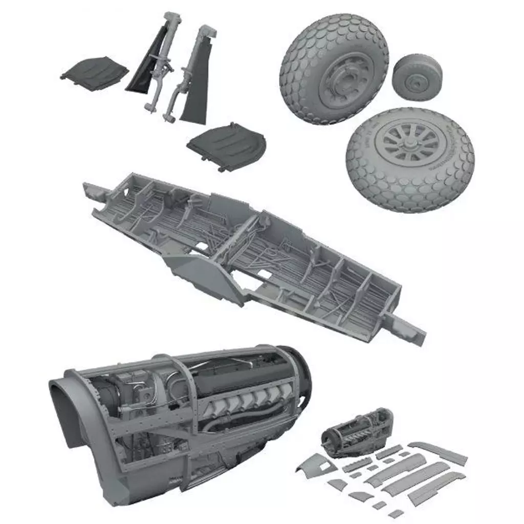 Content : Set of 4 types of engine, landing gear hangar, landing gear and wheel.