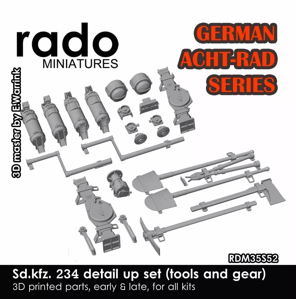 Product Description ■ This is a set of detailed parts to reproduce the external accessories such as tools and equipment mounted on the Sd. Kfz. 234 8-wheel heavy armored vehicle series of the German Army in World War II. It is compatible with kits made by various companies.