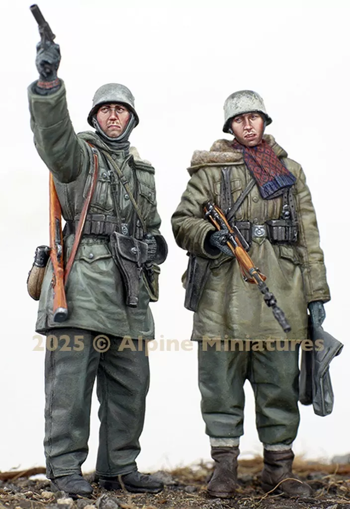 It is modeled as wearing winter equipment M42 winter clothes and holding a Kar98k rifle with a grenade launcher in the right hand.