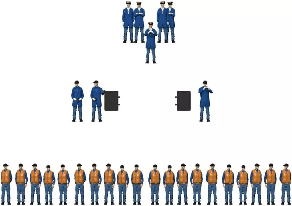 The 1/350 scale accurately reproduces the MSDF submarine crew.