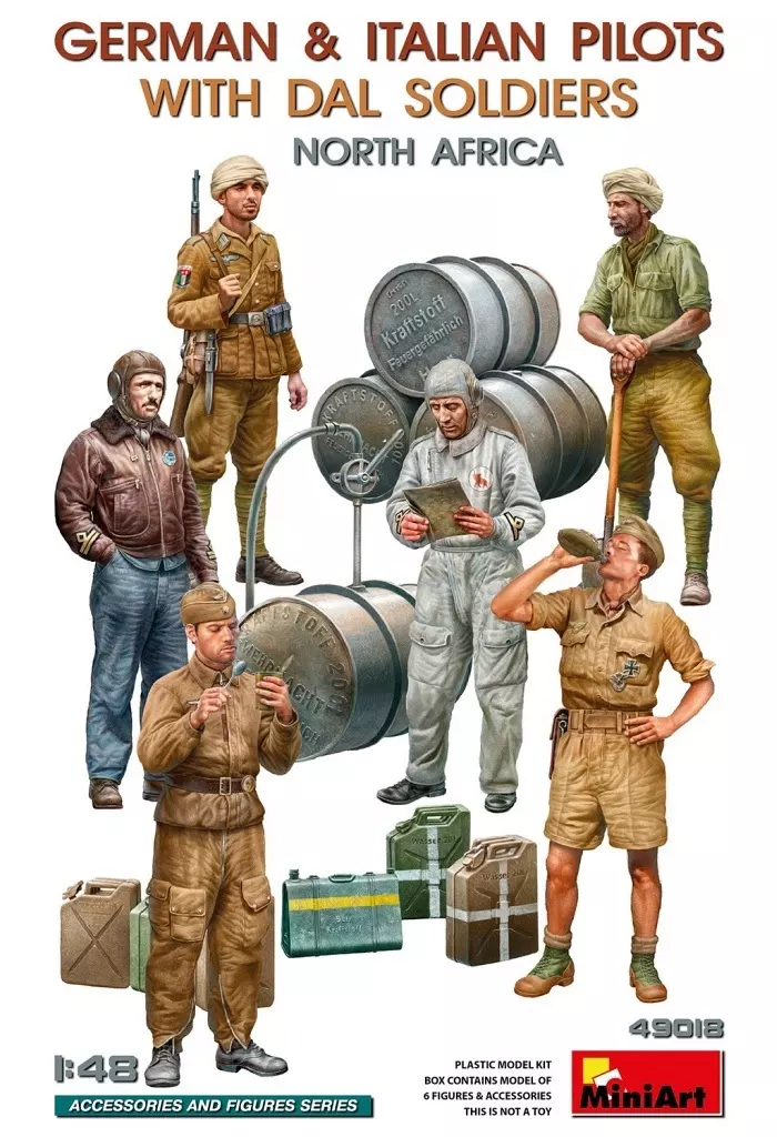 In this set, 6 figures are reproduced. In addition to reproducing pilots of German and Italian forces, the Free Arabian Army and Dal Soldier who acted together are also modeled.