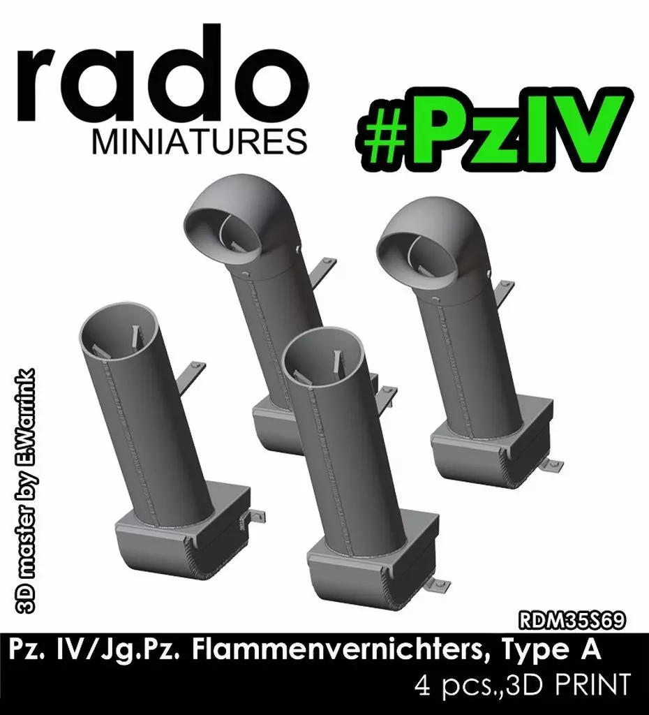 商品解説■IV号戦車J型、IV号突撃砲、IV号駆逐戦車(70)A/V 、メーベルワーゲン、オストヴィントなど大戦末期のIV号戦車派生型車輌に見られる筒形消炎マフラーを再現するディテールパーツセットです。