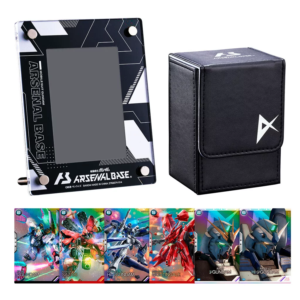 From the arcade card game "MOBILE SUIT GUNDAM Arsenal Base", a deck case with ν (new) Gundam and Sotheby B motif and an acrylic card stand set is now available!