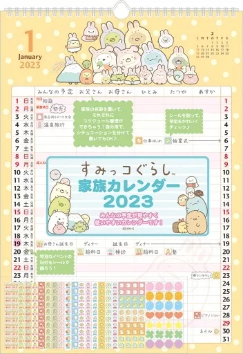Japanese title: カレンダー すみっコぐらし 2023年度壁かけカレンダー(家族)