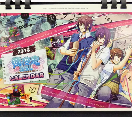 This is the 2016 edition calendar of "Hakuoki SSL? sweet school life?". It is made in a ring style so that you can enjoy it without damaging the calendar.