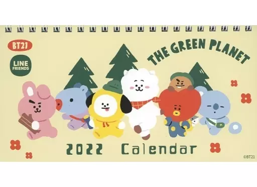 This is a desktop calendar started in January 2022 with a picture of Mr. Character of BT21 and others.