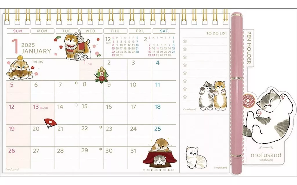 Product Explanation ■ A desk calendar with a cute illustration of モフサンド! It is an easy-to-use desk calendar with pen holder and label.