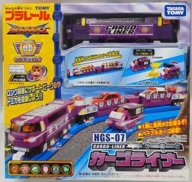 カーゴライナー本体 1編成(2両)、パープルカーゴ×1台、プラキッズ(アサマ隊員)×1体、シール×1枚、取扱説明書×1枚