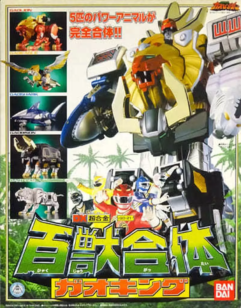By combining Gao Lion, Gao Eagle, Gao Shark, Gao Tiger tiger, and Gao Bison, Gao-King is completed.