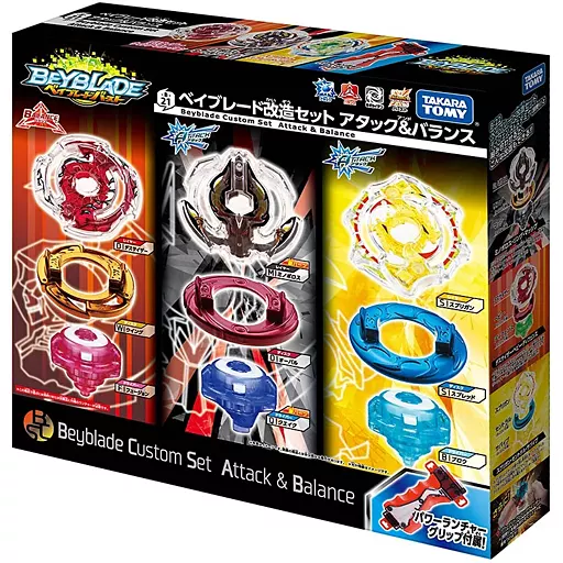 Layer (Death Sizer, Mino Volos, Sprigan) x 1 each, Disk (Wing, Oval, Spread) x 1 each, Driver (Fusion, Quake, Blow), Power Launcher Grip, Seal, Instruction Manual