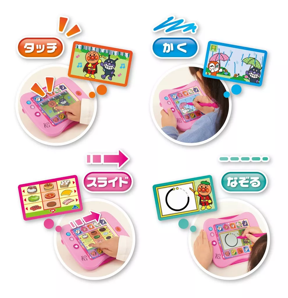 It is easy to operate with the touch of your fingertips! There are 110 apps that can be played with the new menu added to the Anpanman Color Pad.